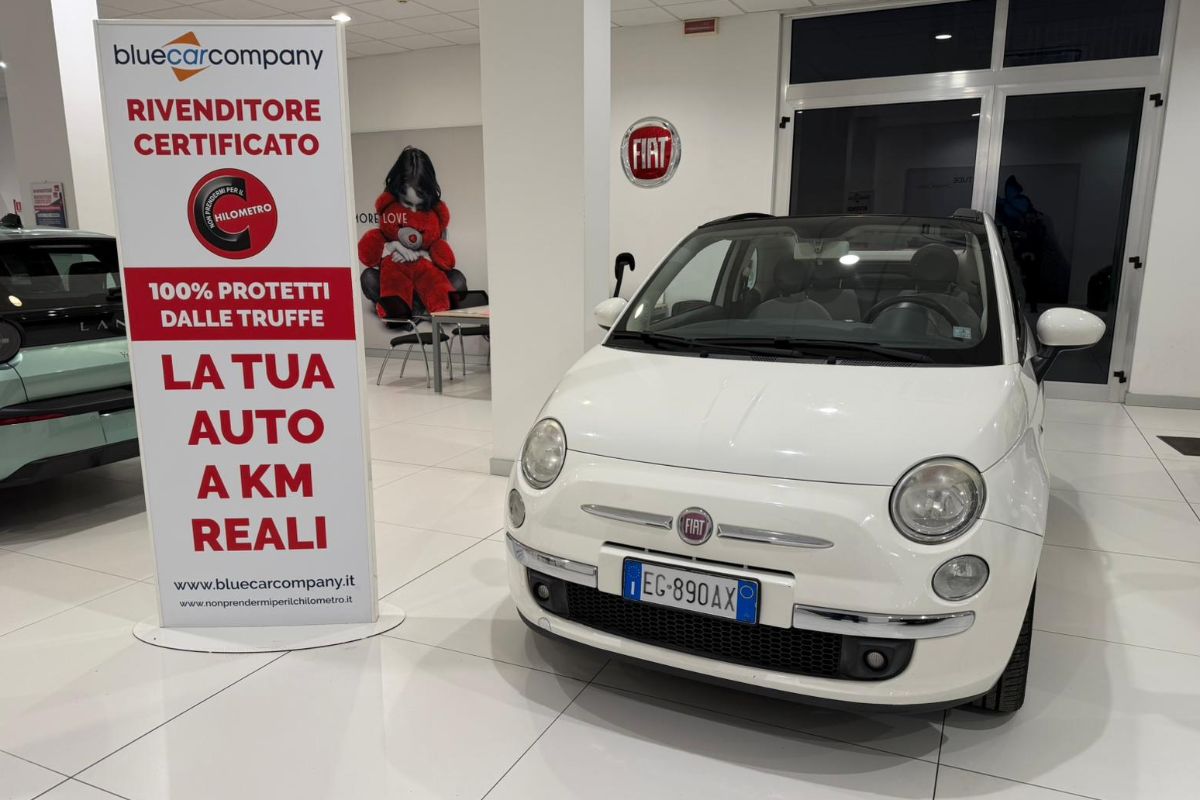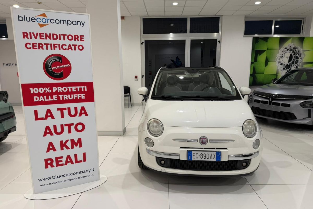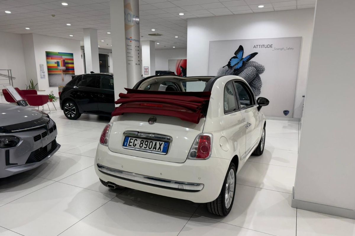 Fiat 500 C 1.2Bz 69Cv Dualogic Lounge, immatricolata 02/2011, km 101.150, colore Bianco Gelato pastello con capotte Bordeaux, interni in misto pelle/tessuto.