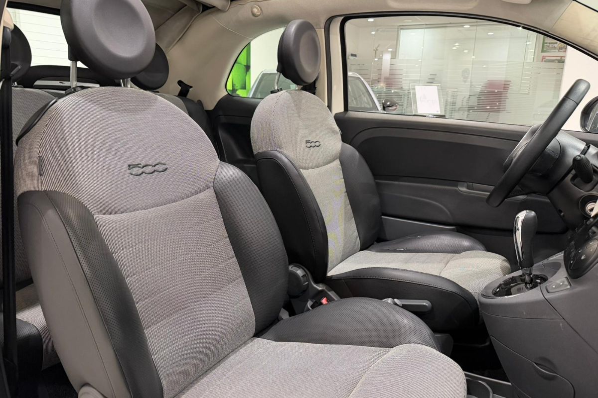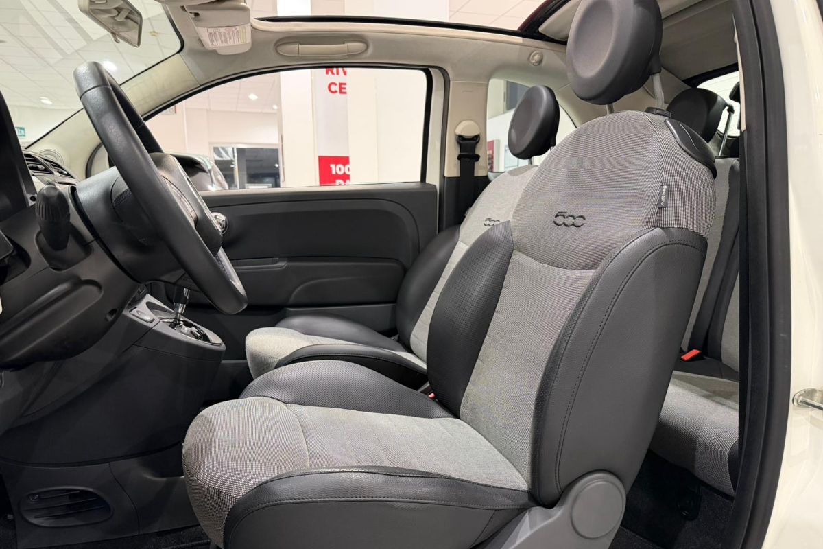 Dotazione: Cambio automatico, cerchi in lega, radio Blue&Me con lettore CD & comandi al volante, usb, climatizzatore automatico, sedile posteriore frazionato 50/50 con appoggiatesta & attacchi isofix, servosterzo, fendinebbia, specchietti retrovisori regolabili elettricamente, alzacristalli elettrici anteriori, fasce paracolpi badge "500", sensori di parcheggio posteriori, start&stop, abs, esp, airbag.