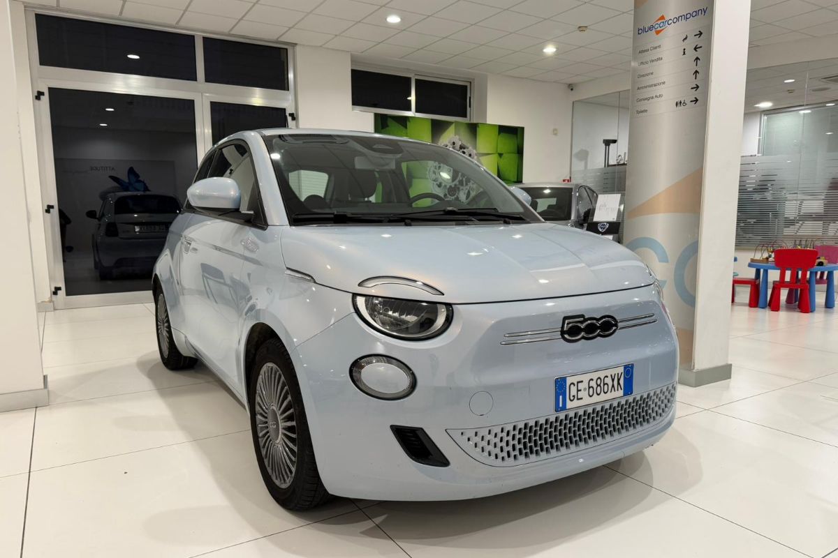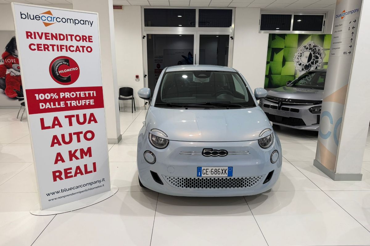 Fiat 500E Icon 42kWh, immatricolata 04/2021, km 50.120, colore Celestial Blue, interni in tessuto.