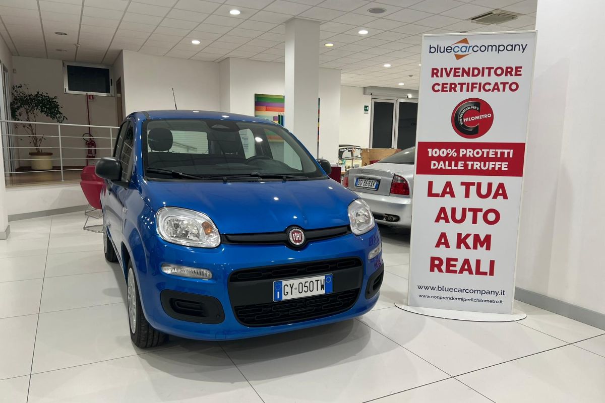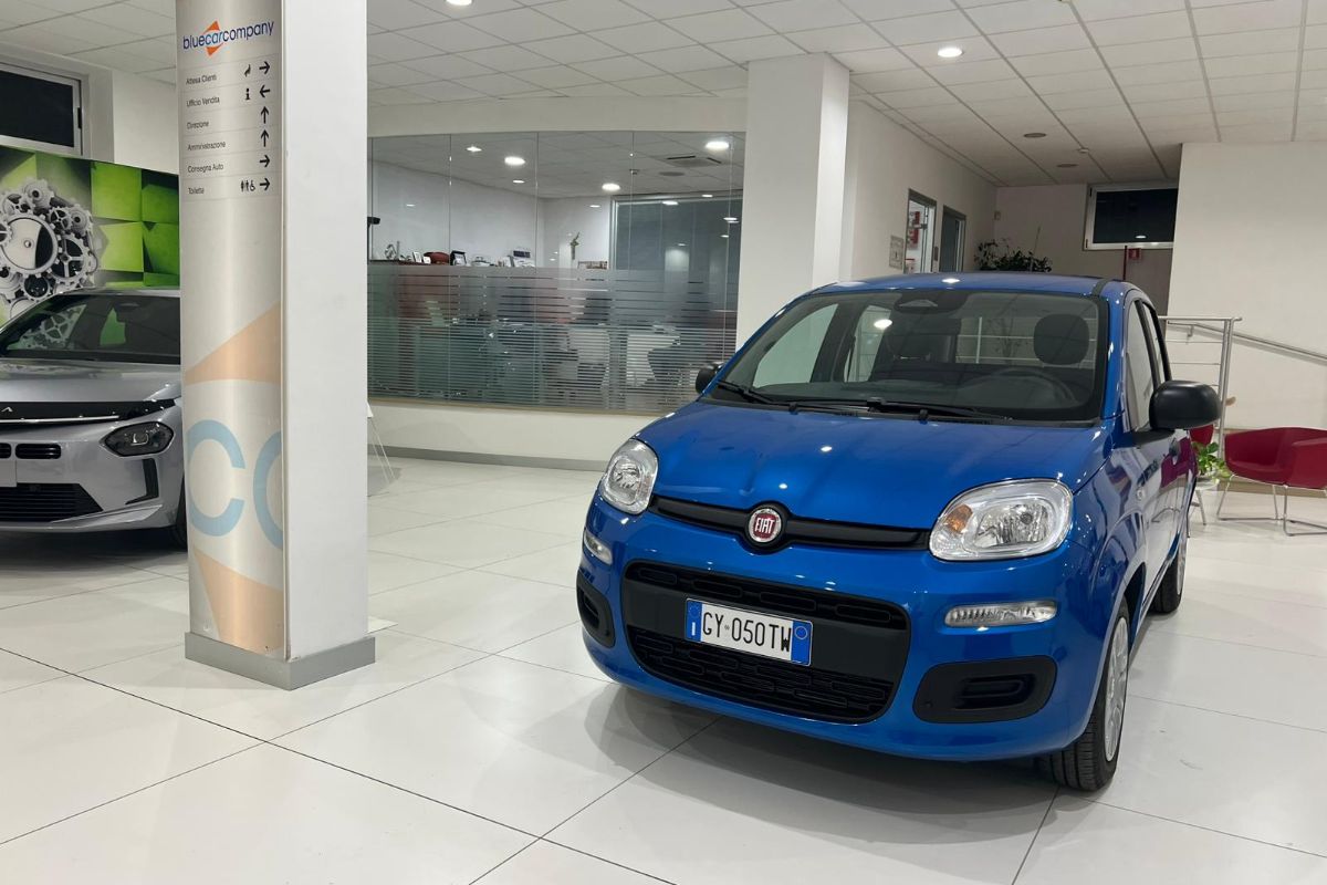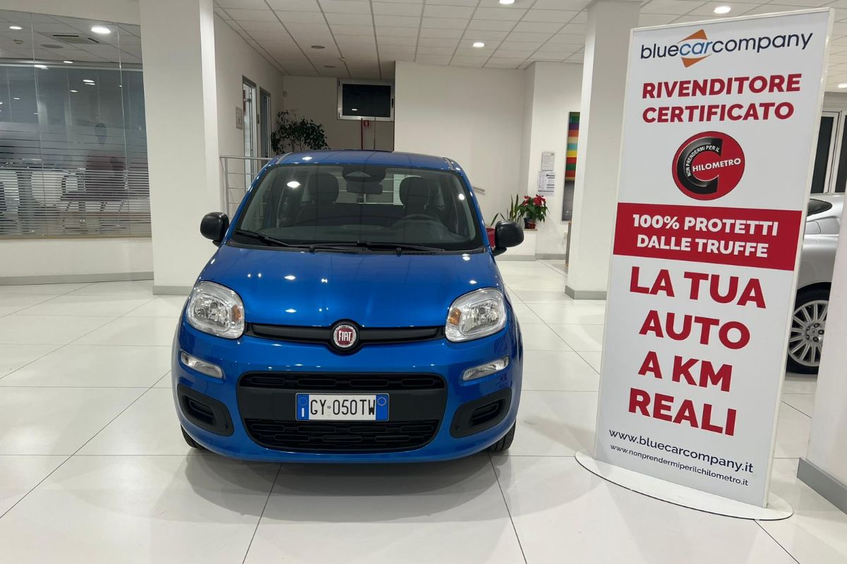 Fiat Panda 1.0 Hybrid 70Cv, immatricolata 05/2025, KM ZERO, colore Blu Italia metallizzato, interni in tessuto.