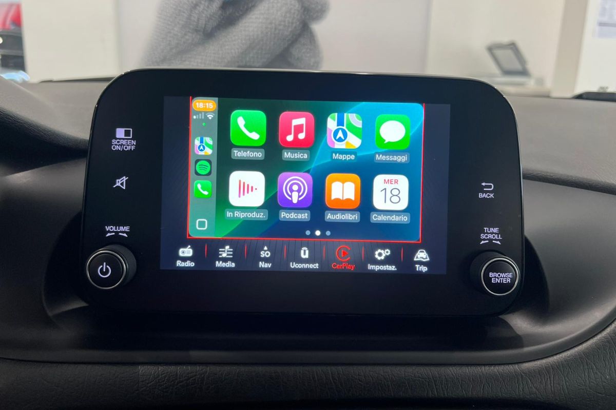 Dotazione: Fari LED, cerchi in lega, climatizzatore automatico, radio DAB uconnect '7 con bluetooth & comandi al volante, apple carplay & android auto, usb, cruise control, lane keep assist, fendinebbia, drl a led, specchietti esterni retrovisori regolabili elettricamente, alzacristalli elettrici anteriori & posteriori, barre portatutto, sedile posteriore frazionato 60/40 con appoggiatesta & attacchi isofix, sedile guidatore regolabile in altezza, servosterzo, abs, esp, airbag, ruota di scorta.