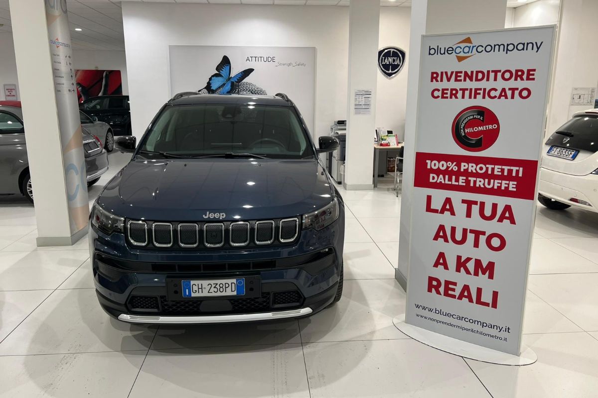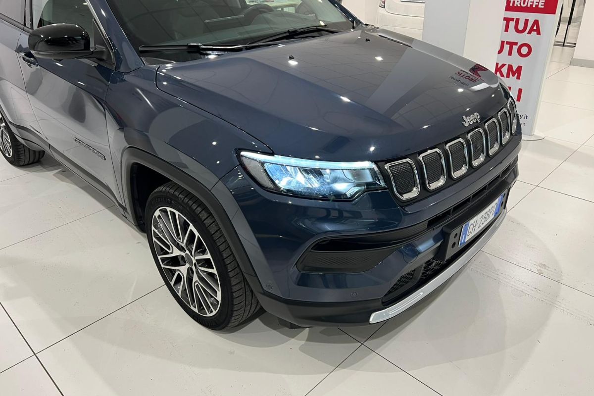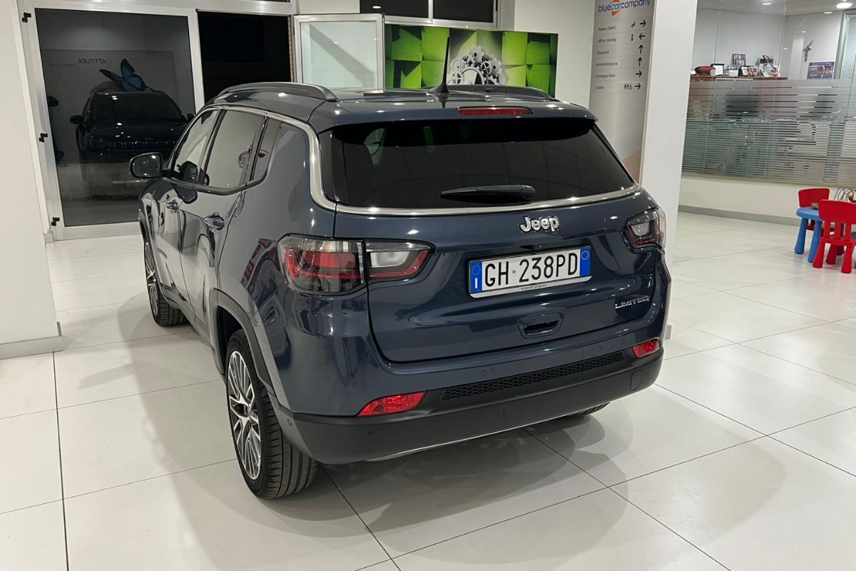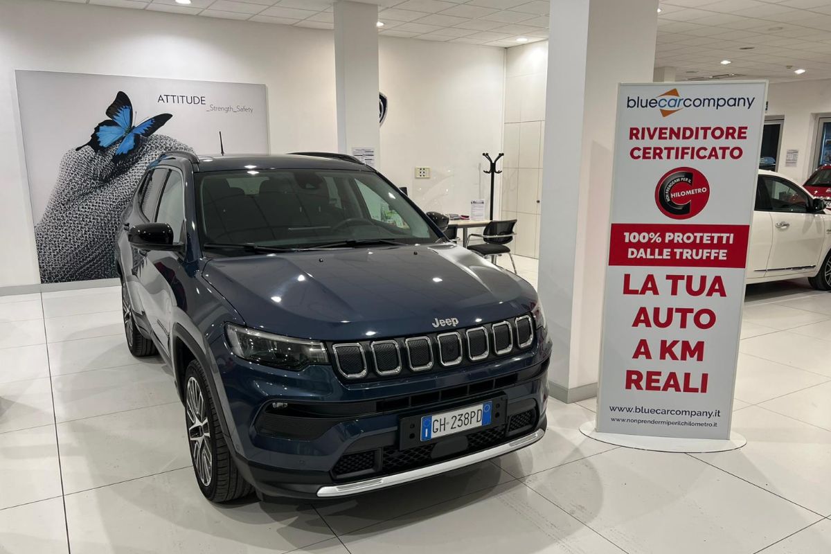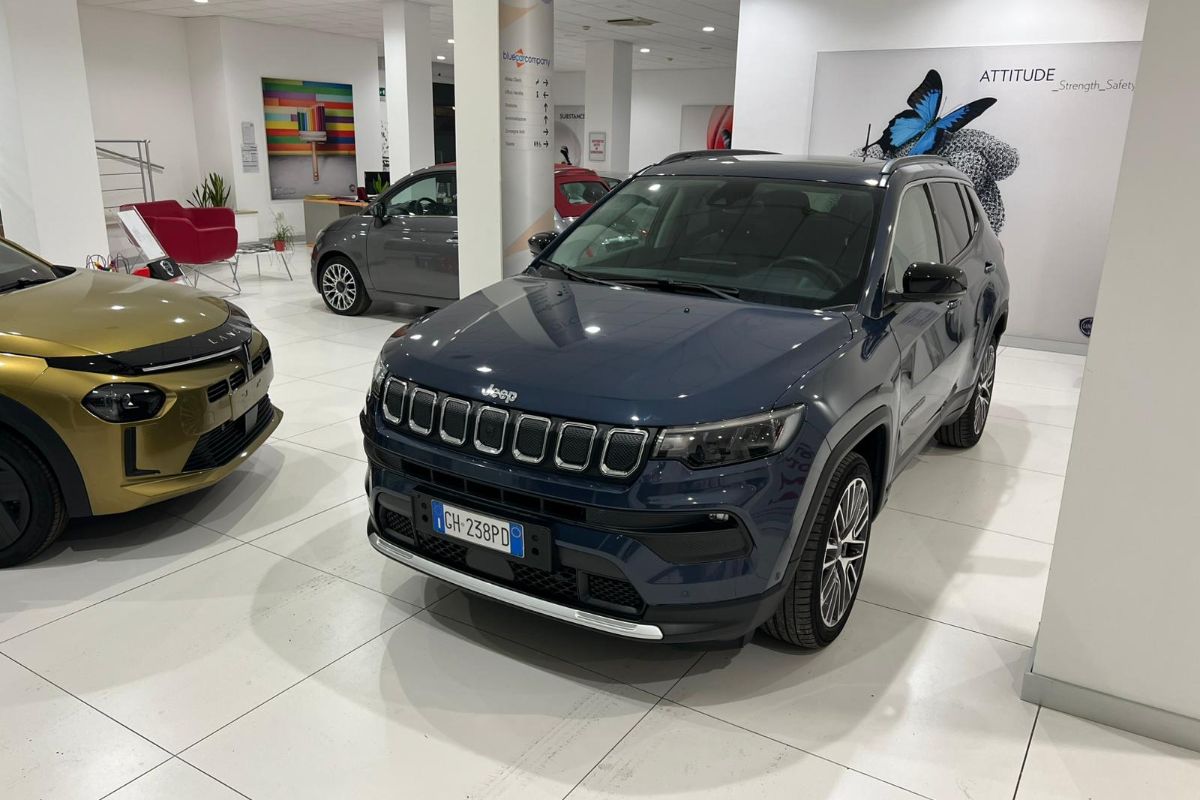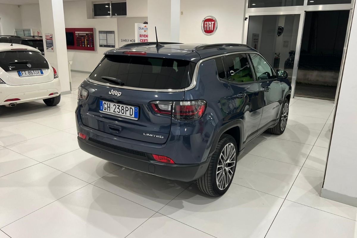 Jeep Compass 1.6Mj 130Cv Limited, immatricolata 01/2022, km 44.150, colore Blue Shade, interni in misto pelle tessuto.