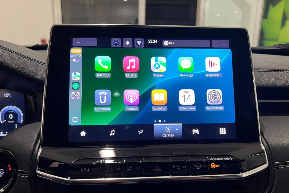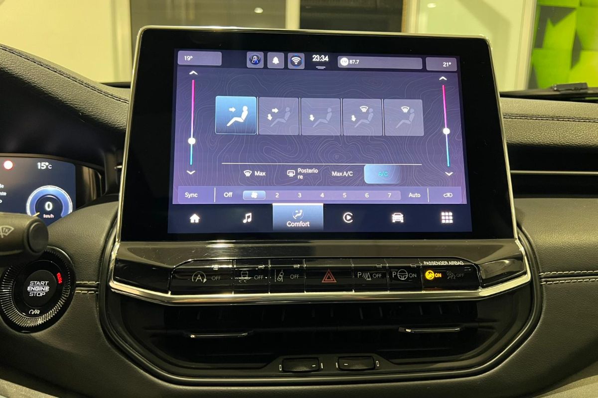 Dotazione: Tetto apribile elettricamente, cerchi in lega '18, Fari LED con sensori luci & pioggia, radio uconnect DAB '10.1 con bluetooth & comandi al volante, apple carplay & android auto, usb, cruise control adattativo, line assist, speed limit info, FWD collision, blind spot & cross patch detection, retrocamera 360° con sensori di parcheggio anteriori & posteriori, ingresso keyless, specchietti retrovisori regolabili, riscaldabili & richiudibili elettricamente, specchietto interno elettrocromico, sedile posteriore frazionato 60/40 con appoggiatesta & attacchi isofix, regolazione lombare elettrica sedili anteriori, cristalli posteriori oscurati, barre portatutto, cargo box, abs, esp, airbag.