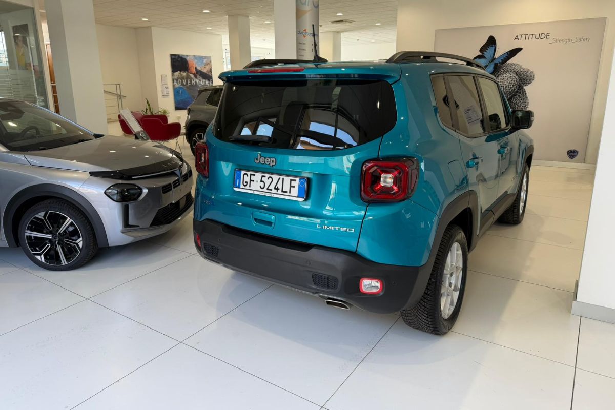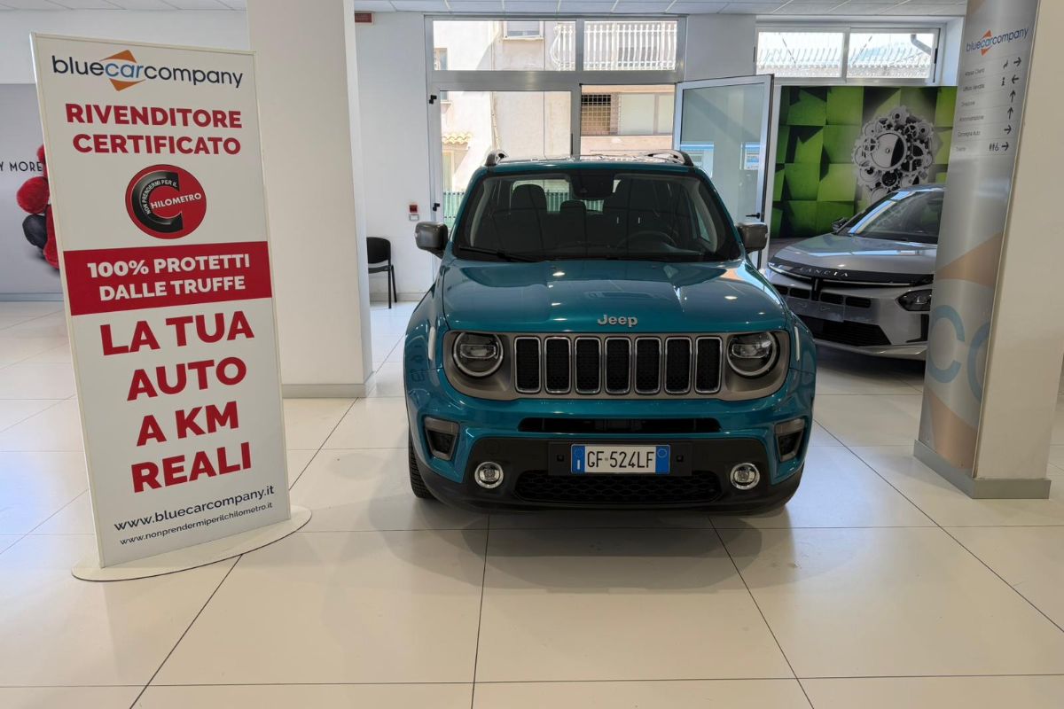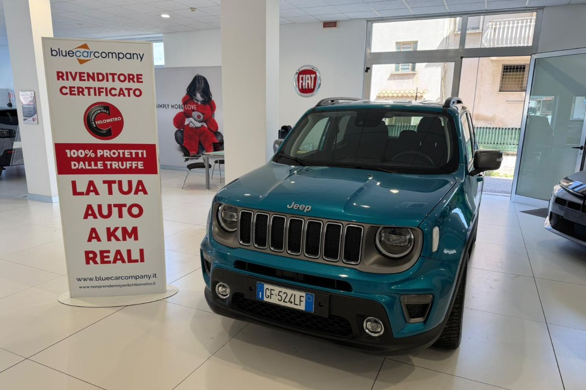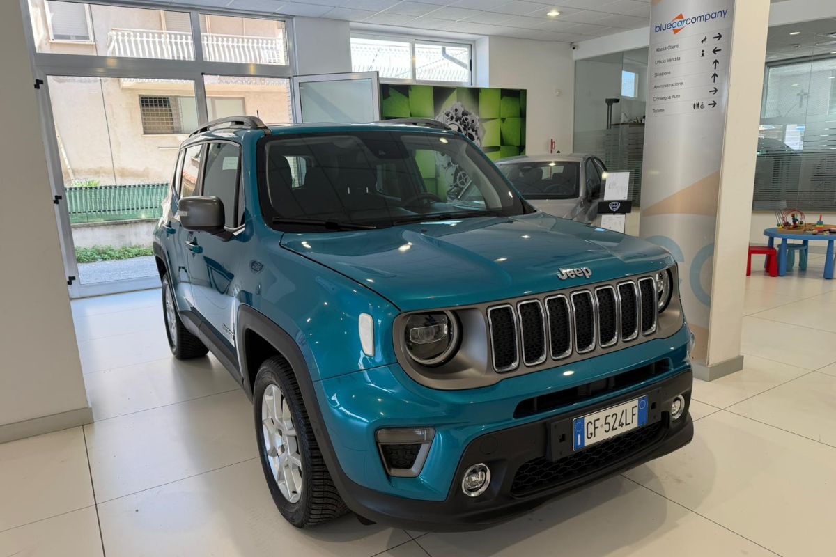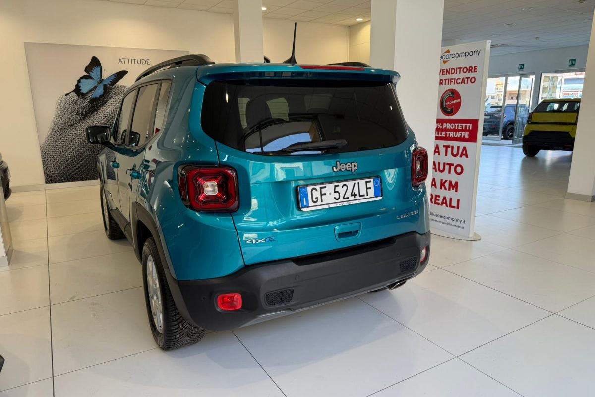 Jeep Renegade 1.3 T4 PHEV 190Cv AT6 Limited, immatricolata 04/2021, km 64.480, colore Bikini Metallic, interni in tessuto.