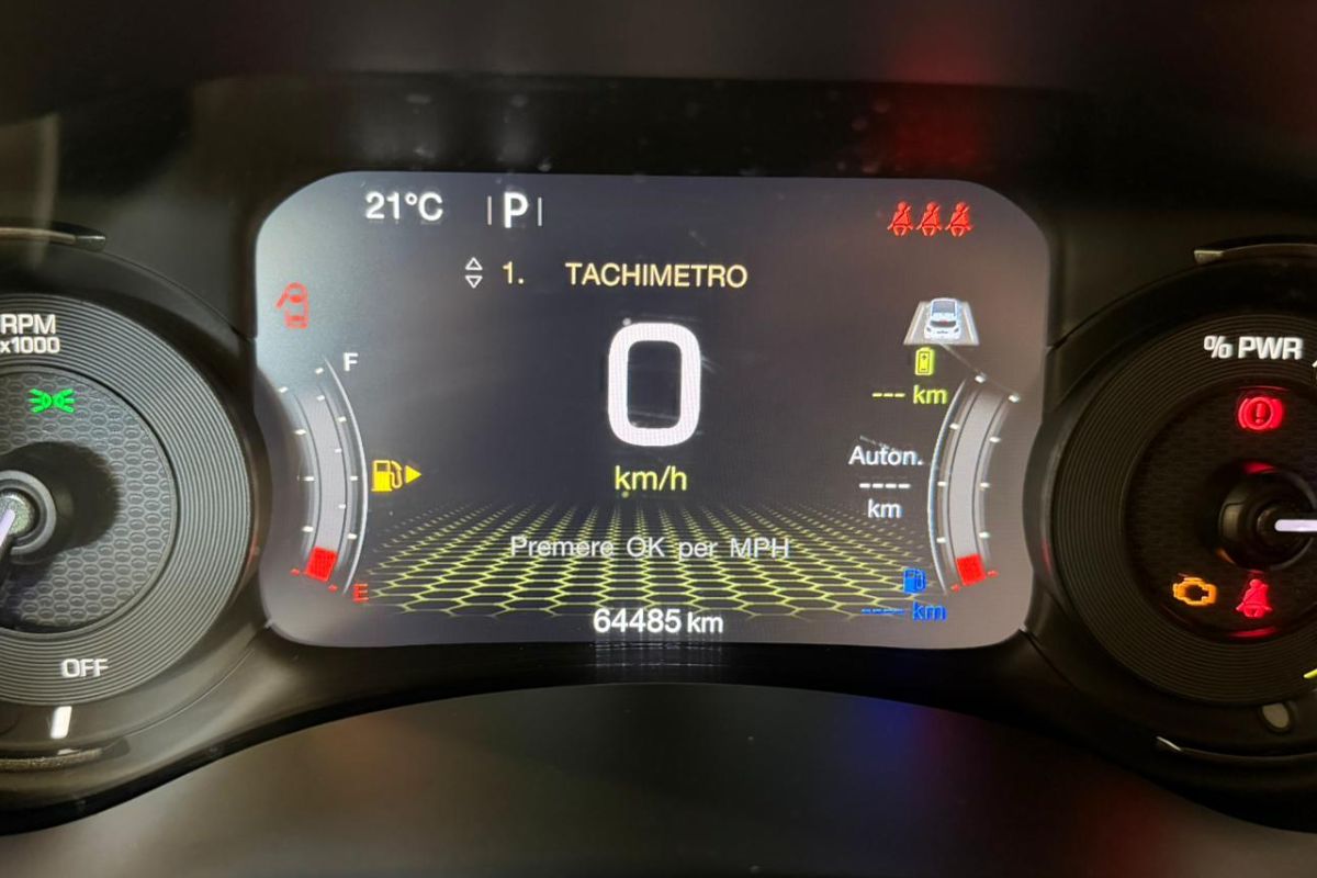 Dotazione: Cerchi in lega '17, fari LED, climatizzatore automatico bi-zona, Uconnect DAB '8.4 con bluetooth & comandi al volante, Apple Carplay & Android Auto, cruise control adattativo, line assist, FWD collision, sensori di parcheggio anteriori & posteriori, sedile posteriore frazionato 40/20/40 con appoggiatesta & attacchi isofix, specchietti retrovisori regolabili elettricamente, specchietto interno elettrocromico, cristalli posteriori oscurati, regolazione lombare elettrica sedile guidatore, barre longitudinali, keyless, cavo di ricarica domestico, ruota di scorta, abs, esp, airbag.