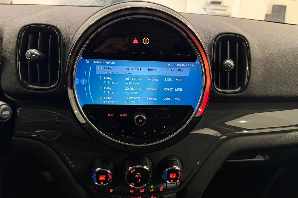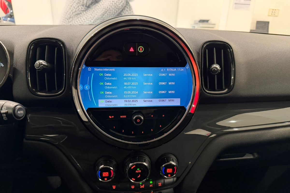 Dotazione: Cambio Automatico Steptronic, fari LED con fendinebbia LED & High Beam Assist, cerchi in lega '16 radio DAB '8.8 con bluetooth & comandi al volante con MINI Connected Navigation, usb & aux, TFT digitale '5.5 a colori, telecamera posteriore con linee guida & sensori di parcheggio posteriori, LED ring, climatizzatore automatico, keyless go, sensore pioggia, bracciolo anteriore, sedili posteriori scorrevoli, frazionati 40/20/40 con appoggiatesta & attacchi isofix, immobilizer, barre longitudinali, chiusura centralizzata, cruise control, driving assistant con Forward Collision Warning & protezione attiva pedoni, Trafic Sign Limit, specchietto interno elettrocromico, specchietti regolabili & riscaldabili elettricamente, servosterzo, abs, esp, airbag.